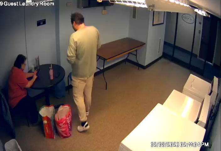 A black and white image captures a portion of an indoor scene, viewed from a high angle. In particular, the image shows part of a body, possibly a person's arm or torso, turned away from the camera. A window is partially visible in the background, offering a glimpse of the outside world. The image also contains an IP camera timestamp and date, "2026-02-03 08:37:37", indicating the source and date of the capture.