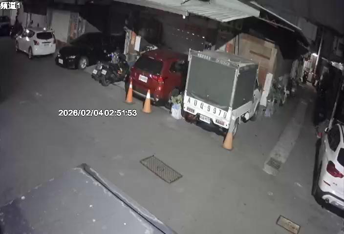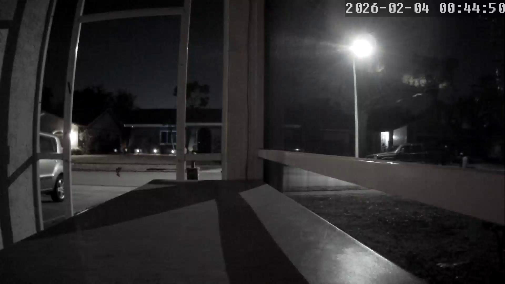 A dark road stretches out into the distance, appearing wet or damp. A faint trail of smoke or light is visible in the distance on the left side of the road. The image is a black and white photograph, likely taken from a security cameraIt is a still image, not a video in motion. The timestamp in the top right corner indicates that the image was captured at 2:39:00 AM on February 3, 2026, near Yarmouth Hwy 101 North.