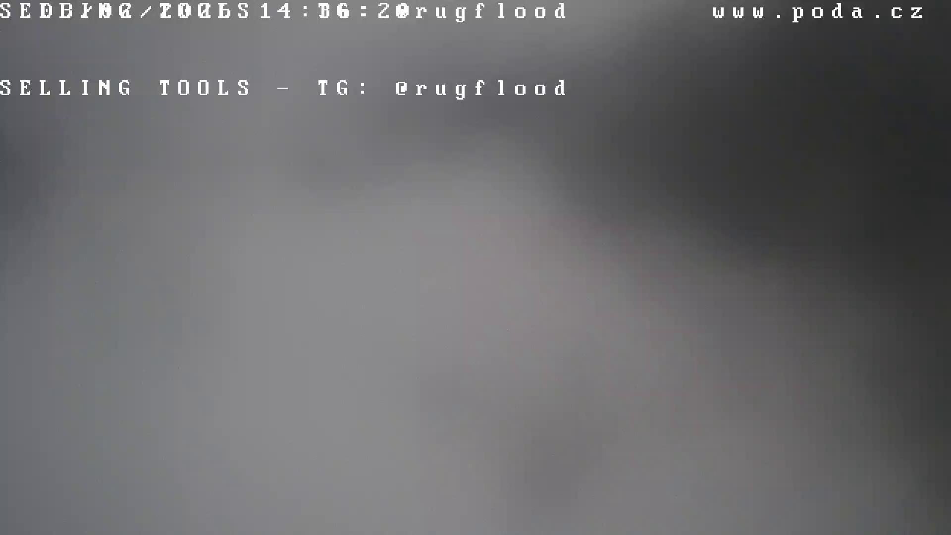 A black and white image, possibly a security camera feed, shows a large, out-of-focus object that resembles a fan or similar mechanical component. The object has a curved top and numerous blades or vanes. Two hashtags are overlaid on the image: "#PUTIN-HUYLO_LA-LA-LA" and "": ". Below the hashtags, the time "01:17:33" is visible. The background is blurred and indistinct, further suggesting a potentially unusual or security-related context for the image.