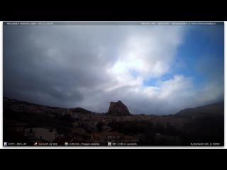A nighttime view of a hillside in La Quinta, Tenerife, Spain. The hill is covered in vegetation, including trees and shrubs, with some lights visible on the hillside. A body of water is visible in the mid-ground, near the horizon. The sky is mostly dark, with some clouds present. The image is taken from a high vantage point, providing a panoramic view of the hillside and the surrounding area. The date and time are displayed in the top left corner of the image.